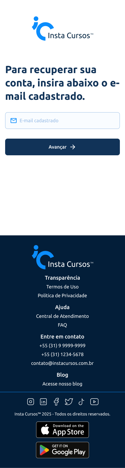 Para recuperar sua conta, insira abaixo o e-mail cadastrado.